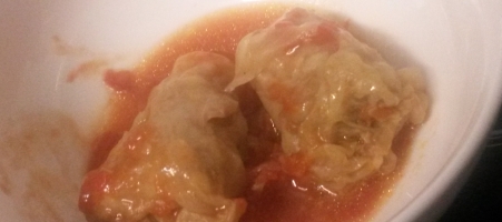Mix minces, rice, onion, 1/4 cup sauerkraut, vegeta, torn bread and egg well with your hands. You may season more if that is your preference.