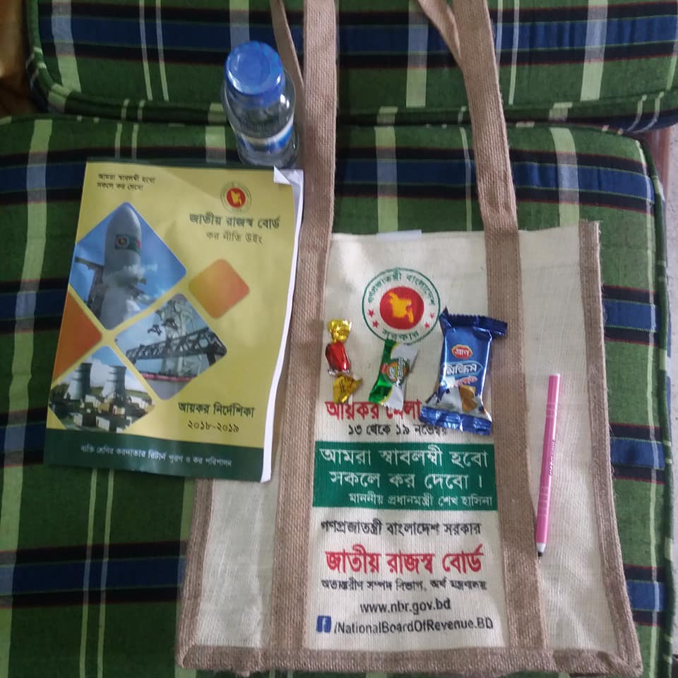 রির্টান জমা দেয়ার পর একটা পাটের ব্যাগে একটি করে ছোট বিস্কুটের প্যাক, পানির বোতল, চকলেট, কলম আর আয়কর নির্দেশিকা দিলো। কলমের আবার খাপ ছিলো না!!! যাইহোক উপহারগুলি পাবার পর রক্ত দানের কথা মনে পড়লো। রক্ত দেয়ার পর এমন পানি, বিস্কুট দেয়। এই আয়কর দেয়া অার রক্ত দেয়ার মধ্যে আসলে পার্থক্য নেই। সারা বছরের রক্ত পানি করা উপার্জন থেকে পদে-পদে ভ্যাট দেয়ার পর আবার অায়ের থেকে কর দেওয়া। বিনিময়ে রাস্তায় নামলে গণপরিবহণ নাই, সন্তানের জন্য সুলভে ভালো শিক্ষা প্রতিষ্ঠান নেই, সরকারি হাসপাতালে সুচিকিৎসা নেই - শুধু নেই আর নেই। এরপর বিগত ১০ বছরে শেষ ভোটটাও দিতে পারছি সেই ২০০৮ সালের ডিসেম্বরে।তারপরেও নাগরিক হিসেবে নিজের দায়িত্ব ঠিকই পালন করছি। তবে কোন একদিন ব্যবস্থা করতে পারলে এই আয়কর অন্যকোন রাষ্ট্রকে দেয়া শুরু করবো। লুটেরা-শ্বাপদময় মৃত্যু উপত্যকায় বসবাসের ইচ্ছা ক্রমেই হ্রাস পাচ্ছে।