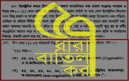 ২০০৬ সালে বিএনপি জোট সরকারের আমলে যুক্ত হওয়া ৫৭ ধারাটি আওয়ামী লীগ সরকার সংশোধনের মধ্য দিয়ে ভয়াবহ রূপ দিয়েছে।