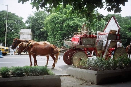 ভিক্টোরিয়া মেমোরিয়ালের সামনে ঘোড়ার গাড়ি