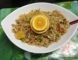 5. এখন সেদ্ধ চাল, ভাজা ডিম সসেজ, লেবুর রস, কমলার টুকরা দিয়ে তারপর পাত্র টি কে দুই পাশে ধরে ভাল করে ঝাকিয়ে বা সাঁতলানো মত ২-৩ বার করে নিন. কোন চামচ ব্যবহার করবেন না.