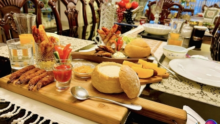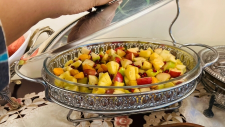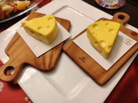 আছে টফু, ফল, সালাদ, সস, সালামী