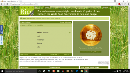 এই পোষ্টটা যে মোটামুটি একটা ফানপোষ্ট সেটাতো বুঝে গিয়েছেন কিন্তু এই ওয়েবসাইটটা খুবই সিরিয়াস। এটা এত মহৎ একটা উদ্দেশ্য নিয়ে কাজ করে যাচ্ছে যে প্রশংসা করার ভাষা আমার নেই। এই সাইটে বিভিন্ন বিষয়ের ওপরে অনেক প্রশ্ন থাকে। প্রতি প্রশ্নের সঠিক উত্তরের জন্যে তারা ১০ গ্রেইনস করে চাল গরীব দেশের ক্ষুধার্ত মানুষের জন্যে ডোনেট করে। লিংকে গিয়ে পছন্দের সাবজেক্ট চুজ করুন। তারপরে প্রশ্ন আসতে থাকবে যা সাধারনত কঠিন হয়না। প্রতি সঠিক উত্তরের পরে পাশে থাকা থালায় চাল যোগ হতে থাকবে। ভুল উত্তর দিলে লস নেই, কিছু যোগ হবেনা শুধু। সাথে সাথে অন্য প্রশ্ন এসে যাবে, সেটা ট্রাই করবেন। যতক্ষন চান খেলতে পারবেন। যত ঠিক উত্তর দিতে পারবেন ততটা চাল ডোনেট হবে! ফ্রি টাইমে বসে খেলতে খেলতে কোন ক্ষুধার্তের মুখে অন্ন তুলে দিতে পারার চেয়ে অসাধারন আর কি হতে পারে?