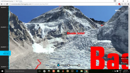 সবাই চায় মাউন্ট এভারেস্টের উঁচু চূড়াটায় পা রাখতে। কিন্তু এই কঠিন কাজ তো সবার সাধ্য না। কিন্তু ইন্টারনেট আছে কি করতে? এই সাইট এভারেস্টের শুরু থেকে শেষ পর্যন্ত একটা 3D ভ্রমনের ব্যবস্থা করেছে। সাউন্ড এবং পুরো এক্সপেরিয়েন্স ভীষন রকম বাস্তব। ট্রাই করলেই বুঝতে পারবেন। লিংকে ক্লিক করলে লোড হতে থাকবে তারপরে START THE CLIMB এ ক্লিক করলে জার্নি শুরু হয়ে যাবে। আপনার ভ্রমন নিরাপদ এবং আনন্দময় হোক!