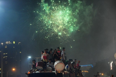 রাতের আকাশকে আতশবাজির আলোয় রাঙিয়ে দেওয়া হয়।