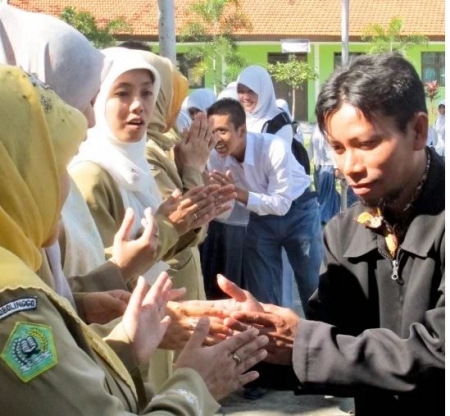 হালাল বি হালাল নামের অনুষ্ঠানের মাধ্যমে ইন্দোনেশিয়ানরা পরিবার ও বন্ধুদের সাথে সাক্ষাতকালে ঈদের শুভেচ্ছা জানায়, এবং ক্ষমা চায় পূর্ববর্তী কোন ভুলের জন্যে। এর জন্যে বড়রা ছোটদের দু হাত ধরে হাত মেলায়, এবং ছোটরা বড়দের হাত, কপাল, গাল স্পর্শ করে।