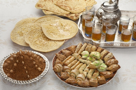 পুদিনার চা এবং প্যানকেক, পেস্ট্রি সহ নানা ধরণের খাবার মরোক্কানরা পরিবারের সাথে উপভোগ করেন ঈদের দিনে।