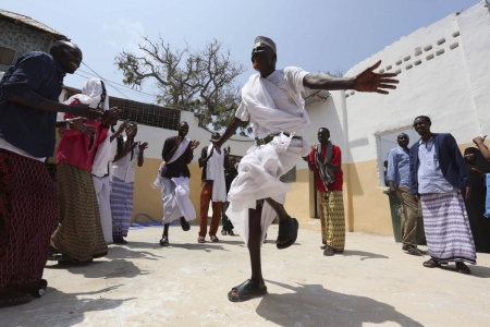 ট্রাডিশনাল নাচের মাধ্যমে ঈদকে স্বাগতম জানাচ্ছেন এক সোমালি পুরুষ।