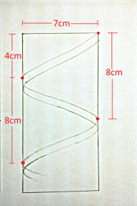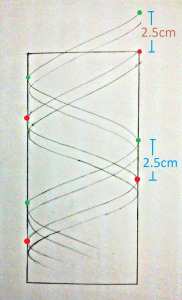দ্বিতীয় সূত্রক আঁকতে প্রতিটি লাল ডটের ২.৫ সেমি উপরে আরেকটা করে ডট দাও [নিচের চিত্রে সবুজ ডট দিয়ে দেখানো হয়েছে] এবং সেগুলো ফলো করে আরেকটা S লিখে ফেলো!