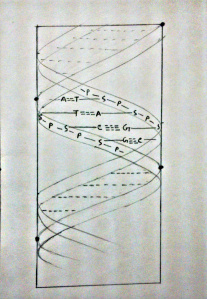 ধর, হাতে একদম সময় নাই, একেবারে শেষ কয়েক মিনিটে DNA হেলিক্স আঁকা বাকি। তখন আর দিন-দুনিয়া কে পাত্তা দেয়, ধুমধাম কিছু একটা আঁকতে পারলেই শান্তি! দুইটা পেনসিল একসাথে ধর। খাতায় একটা ‘S’ আঁক। হয়ে গেল সিঁড়ির এক সাইডের রেলিং! অবশ্য S এর দুই প্রান্ত টান দিয়ে উপরে নিচে একটু লম্বাটে করে দিও!