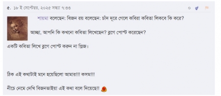 আমার জন্য ২দিন আগে একটি কবিতা পোস্ট করেছিলেন সেখানে শায়মা কিছু বলেছিল।