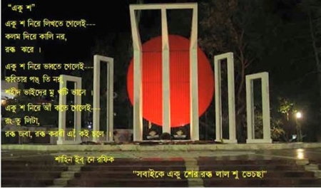 মাইনুল ইসলাম আলিফ বলেছেন: শহীদ দিবসের অগ্রিম শুভেচ্ছা লেখক সহ সকলকে ।