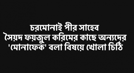 উনার উচিৎ আগে সৈয়দ বংশীয়দের উপরে উনার জানা সুন্নৎ কায়েম করা। তারপরে, অন্যদের 'মুনাফিক' বললে ক্ষতি নেই।