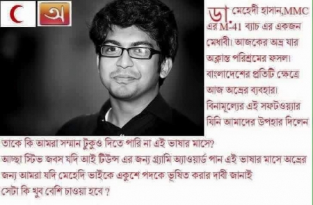 বর্তমানে আপনি ডাক, টেলিযোগাযোগ ও তথ্য যোগাযোগ মন্ত্রী হয়েছেন । আপনাকে সাধুবাদ জানাই । আমি জানি এই সুযোগে অভ্রের উপর ঝাঁপিয়ে পড়া আপনার জন্য অনেক সহজ । তবে আমি চাই আপনার শুভবুদ্ধির উদয় হোক । আপনার মাধ্যমে বাংলা ভাষা সামনে এগিয়ে যাক । সর্বস্তরে বাংলা ভাষা পৌঁছে যাক। আপনি বাংলা ভাষার প্রচার ও প্রসারণের মাধ্যম হন । শত বছরের জরাজীর্ণ ঐতিহ্যের বটগাছ হয়ে পথ রুদ্ধ করে সকলের ঘৃণার পাত্র না হওয়াই উত্তম ।