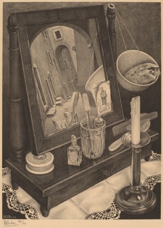 Still Life with Mirror, 1934, lithograph, Cornelius Van S. Roosevelt Collection All M.C. Escher works
