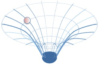 অপেক্ষাকৃত কম ভারী গ্রহ বা নক্ষত্র তখন টোল খাওয়া স্পেসটাইমের মাঝে পাক খেয়ে চলে।