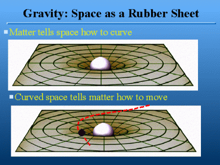 এই স্পেসটাইম টান টান করে ছড়ানো আছে সমগ্র মহাবিশ্ব বরাবর রাবারের চাদরের মত।