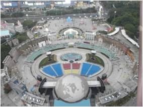 হূয়াকূইয়াং রোড মেট্রো স্টেশন থেকে আট স্টেশন পরে উইন্ডো অব দা ওয়ার্ল্ড স্টেশন। এখানেই চীনারা পৃথিবীর সব সুন্দর স্থাপনার কপি বানিয়ে রেখেছে।২৮ এপ্রিল ২০১৪ সকাল ১০ টার সময় আমরা মেট্রোতে চড়ে উইন্ডো অব দা ওয়ার্ল্ড স্টেশন আসি। স্টেশান থেকে বের হওয়ার সময় কাঁচের পিরামিদ বানানো এটা প্যারিসের লুভ মিউ জিয়ামের সামনের পিরামিডের আদলে বানানো। এই স্টেশনের পাশেই উইন্ডো অব দা ওয়ার্ল্ড বিনোদন কেন্দ্র। সামনে সুন্দর ফোয়ারা ফুলের বাগান সব কিছু যেন নিখুঁত আর দৃষ্টি নন্দন।