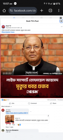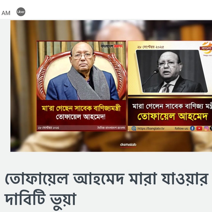 আমি নই বলেছেন: ওকে, তোফায়েল মারা যান নাই। তোফায়েল সাহেবকে নিয়ে গতকালকের নিউজ হচ্ছে ওনাকে সিসিইউতে নেয়া হয়েছে। গত ৬ দিন ধরে তিনি স্কয়ার হাসপাতালের সিসিইউ’র বেড নম্বর-১০ এ ভর্তি রয়েছেন।
