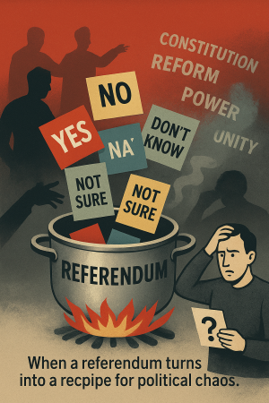 ঐকমত্য কমিশন হয়তো অনেক চিন্তা করে একটি “গণতান্ত্রিক সমাধান” দিতে চেয়েছে। কিন্তু বাস্তবে এটি হয়েছে এক গণবিভ্রান্তি-নির্ভর গণভোট।