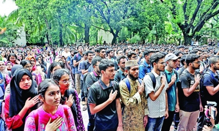 গত ০৮/০৮/২০২৩ তারিখ মঙ্গলবা দুপুর ১টা ২৫ মিনিটে বাংলাদেশ প্রকৌশল বিশ্ববিদ্যালয়েরর (বুয়েট) ক্যাফেটেরিয়ার সামনে সম্মিলিত কণ্ঠে সাংগঠনিক ছাত্র রাজনীতির বিরুদ্ধে শপথগ্রহন করেছে শিক্ষার্থীরা। নিঃসন্দেহে যা একটি ঐতিহাসিক মূহুর্ত। তারা প্রতিজ্ঞা করেছে বিশ্ববিদ্যালয় ক্যাম্পাসে নৈতিকতার সঙ্গে অসামঞ্জস্যপূর্ণ সকল প্রকার বৈষম্যমূলক অপসংস্কৃতি, সন্ত্রাস, সাম্প্রদায়িক অপশক্তি এবং ক্ষমতার অপব্যবহার সমূলে উৎখাত করবে, সম্মিলিতভাবে রুখে দেবে।