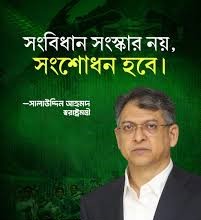 এখন প্রশ্ন হলো জনগন আগে নাকি সংবিধান আগে? সংখ্যা গরিষ্ঠ জনগন সংবিধানের পরিবর্তন চায় বিএনপিও চেয়েছিল যখন মাইনক্যার চিপায় ছিল। ছাত্র জনতা যখন বিএনপিকে উদ্ধার করলো মাইনক্যার চিপা থেকে তখন বিএনপি ১৮০ ডিগ্রী ঘুরে ঠিক বিপরীতে অবস্থান গ্রহণ করলো।