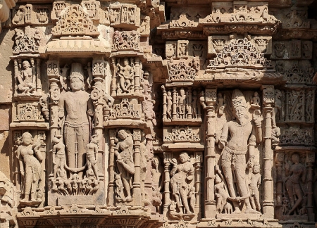 মন্দিরের বাইরের দেয়ালে সূর্যকে ১২ টি ভিন্ন ভিন্ন ভঙ্গি দেখানো হয়েছে আর তার সাথে আছে ৮ টি দিক বা ৮জন দিকপাল। আরও আছে বিশ্বকর্মা যিনি ভগবান শ্রী কৃষ্ণের স্বর্ণের দ্বারকা নগরী তৈরি করে দেন,সিদ্ধিদাতা গনেশ,শিক্ষা এবং জ্ঞানের দেবী সরস্বতী মাতা। তাছাড়াও রয়েছে সমুদ্রমন্থনের দৃশ্য।