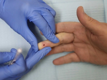 কয়েক সেকেন্ডের জন্য আগুনের শিখার উপরে সুচটিকে গরম করে নেবেন যাতে করে জীবাণুমুক্ত হয় এবং তারপর রোগীর হাতের ১০ আঙ্গুলের ডগার নরম অংশে ছোট ক্ষত করতে এটি ব্যবহার করুন।এমনভাবে করুন যাতে প্রতিটি আঙুল থেকে রক্তপাত হয়, কোন অভিজ্ঞতা বা পূর্ববর্তী জ্ঞানের প্রয়োজন হবে না ।