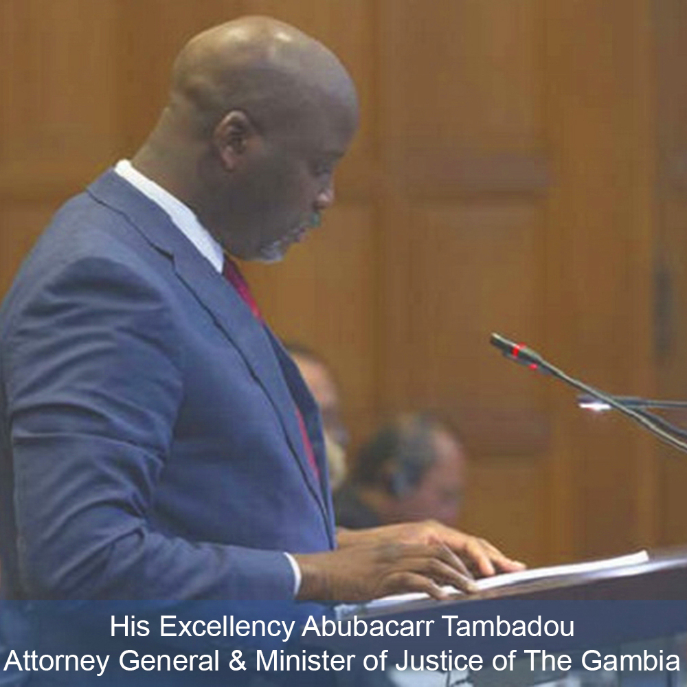 উপসংহার: - শেষ পর্যন্ত মামলার ফলাফল যা-ই হোক, আবুবকর তামবাদুকে সময় মনে রাখবে। গাম্বিয়াকে সবাই মনে রাখবেন। নির্যাতিতের পক্ষে, নিপীড়িতের সঙ্গে দাঁড়ানোর সুযোগ সময় করে দেয়। কিন্তু সেই সুযোগ সবাই গ্রহণ করতে পারেন না। যারা ঝুঁকি নিয়ে, দায়িত্ব নিয়ে এগিয়ে যান, ইতিহাসের পাতায় তাদেরই নাম লেখা হয়। গাম্বিয়া থেকে বাংলাদেশের ভৌগলিক দুরত্ব ১১,০৬৪ কি: মি: এতোদুরে থেকে গাম্বিয়া আমাদের মর্মপীড়া, মর্মব্যথা বুঝতে পেরেছেন তাদের প্রতি আমরা বাংলাদেশী চিরো কৃতজ্ঞ। গাম্বিয়ার প্রতি আমরা বাংলাদেশী চিরো ঋণী।