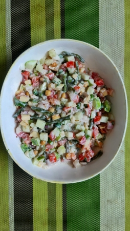 মাঝে মাঝে আমার স্বাস্থ্যকর খাবার খাওয়ার শখ জাগে। অবশ্য বাড়িতে যা রান্না হয় তার সবকিছুই কম বেশি স্বাস্থ্যকর। কিন্তু আজ কেন যেন ইচ্ছা হলো স্যালাড খাবো।