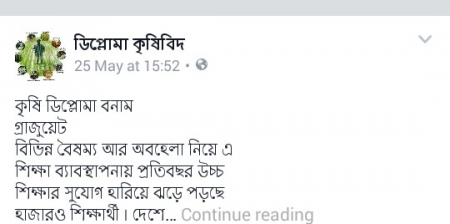 কৃষি ডিপ্লোমা কোর্সের সাথে কৃষি মন্ত্রণালয়ের অনৈতিক শিক্ষা নিতি পরিবর্তন আবশ্যক ।
