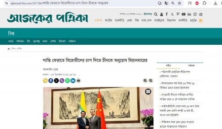 যুদ্ধ বন্ধ করে জান্তাবাহিনীর সঙ্গে আলোচনায় বসতে বিদ্রোহী গোষ্ঠীগুলোকে চাপ দিতে চীনকে অনুরোধ করেছে মিয়ানমার। গত বুধবার দেশটির জান্তা সরকারের পররাষ্ট্রমন্ত্রী থান শোয়ে চীনের পররাষ্ট্রমন্ত্রী ওয়াং ইর সঙ্গে সাক্ষাৎকালে এই অনুরোধ জানান। মিয়ানমারের সংবাদমাধ্যম ইরাবতীর প্রতিবেদন থেকে এ তথ্য জানা গেছে।