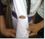 অধ্যক্ষ হাতের কাপড কাটছে. আবশ্যয় নিন্দনীয়